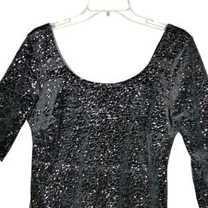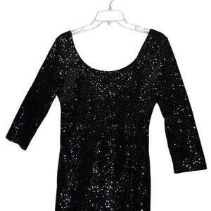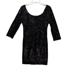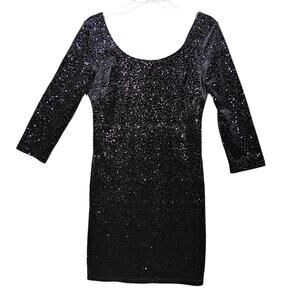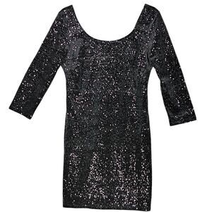 Sequined Cocktail Dress Size Small Bodycon Low Back Black 3/4 Sleeves No Tags