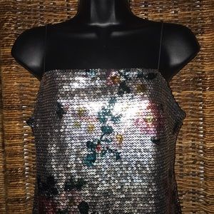 Sequined Dress with angel hair straps. Cute for a night on the town. If you look closely there is a rose design in the sequins!!! NWT