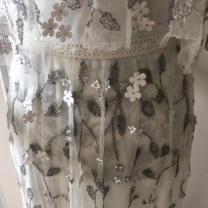 Dress has a cream underlay with a mesh, beaded & sequined overlay