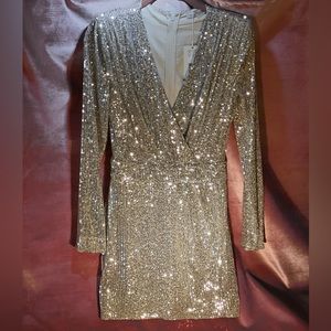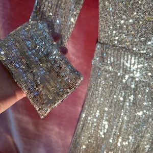 Maybe easily fit a size 2 or 4 given the dresses fabric. Absolutely stunning and sparkles just like you see, no filters needed for this piece!