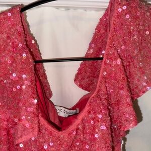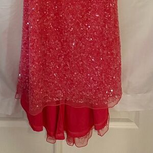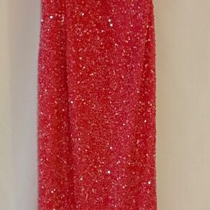 Sequined Drop Shoulder Trumpet Gown Watermelon Pink Sequin Dress