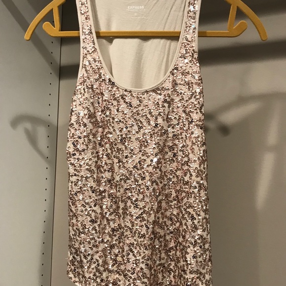 Light beige sequined tank. Perfect for under a blazer or cardigan. Colors are in the gold family. Excellent condition.
