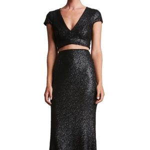 Dress the Population gorgeous two piece gown. I wore it one night to a wedding. There is no damage or alterations to the dress. It fits beautifully.