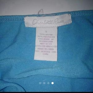 Teal blue with different colored sequins on the front. Ties at neck and fitted around waist line
