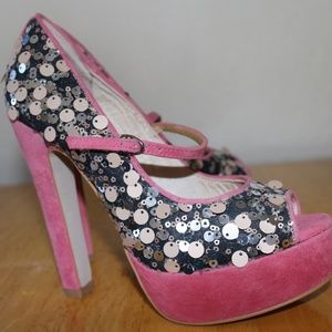 Sequined high heeled Mary Jane style. Worn twice, in great condition.