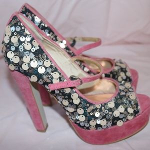 Sequined Mary Jane heels by OSOS, size 7
