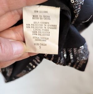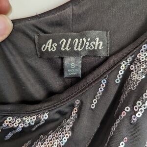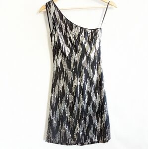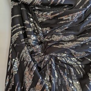 Sequined Party Dress Small Black Silver One Shoulder Twist Accent Formal