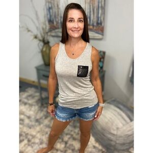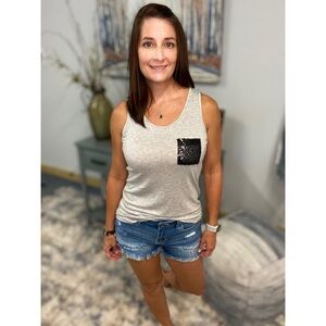 Sequined Pocket Tank Black Gray 1717
