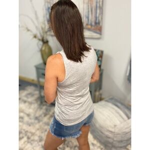 Sexy scoop neck tank top. Floaty fit accented with a functional black sequined pocket.