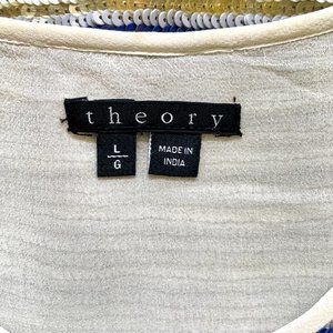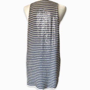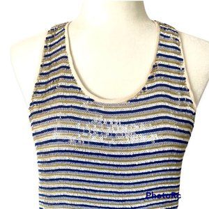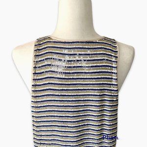 Sequined Striped Long Tank w/Silk Cream Piping Size Large by Theory