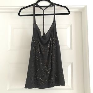Sequined T-Back Top Express Size Medium Front 100% Polyester; Back 52% Cotton, 48% Modal Bust 17.5 Length 28”