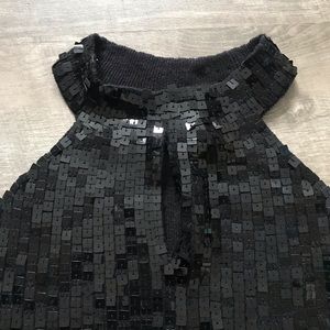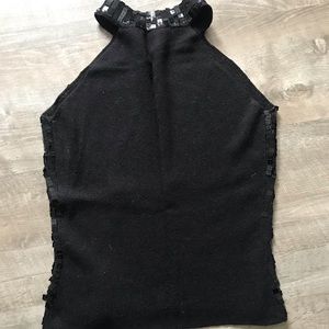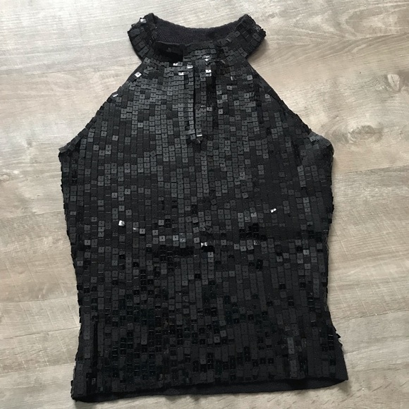 Sexy & sparkly black sequined keyhole tank in excellent condition. I’ve owned this for years and nothing is better for NYE and the holidays! Slightly cropped with a stretchy fabric. Keyhole at the top - show off your arms and collar bone! Measurements: 15” pit to pit and 13” pit to hem.