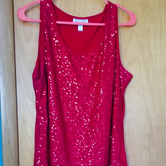 Adorable red sparkly tank. Perfect for the upcoming holidays! Has some loose sequences at the hem