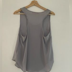 Loose, flowy, racer back. Material is thin, can be transparent as in picture. Super light, bright and fun for summer.