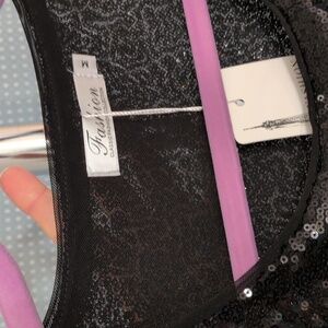 NWT Semi sheer tank thoroughly covered in small sequins. Nice amount of stretch. Rounded lower edge.