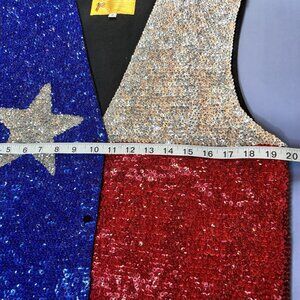 Sequined Texas Flag Vest - Bling Bold Red White Blue & Silver