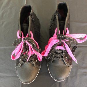 Circo wedge sneakers in pink and black with sequins and glitter.