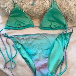 Ombré color scheme with Aqua, lavender, and silver sequins adorn the triangle top