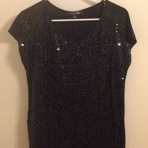 Super cute black dress. The front has sequins all over and the back is plain black. Only worn once, size large from forever 21.