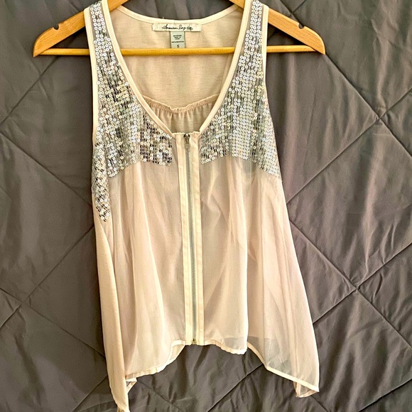 Fun for summer American Rag, zipped front, sequined top with see through front.