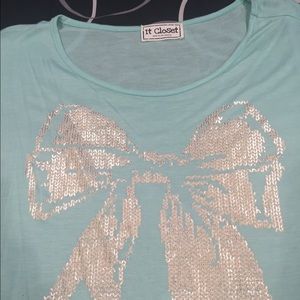 Light blue tee - made by It Closet, Sold by Delia's. Super soft fabric with more coverage in the back. Like new!