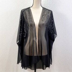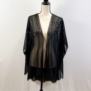 Dolman sleeve sheer black sequins kimono top/ cover up / black sheer evening wrap cover up