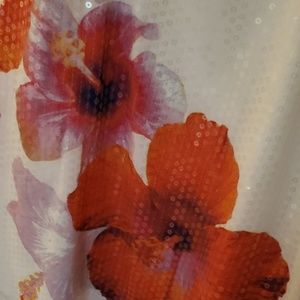 Stunning, a line white tank in 100% polyester with beautiful hibiscus flowers on the front adorned with clear sequins.