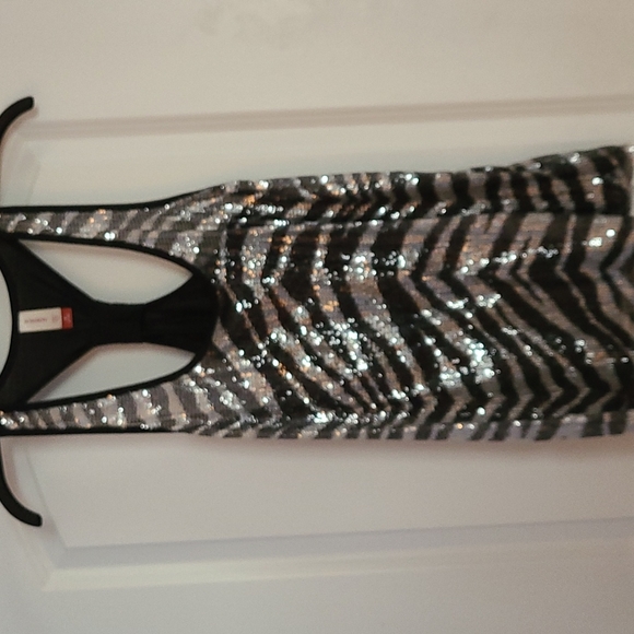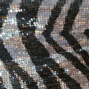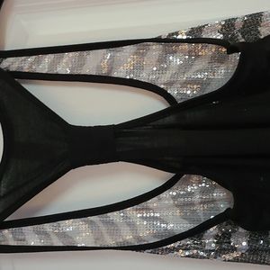 Zebra print sequined tank. Racer Back is solid black. A little stretch. Slightly sheer. Size Medium 7-9 juniors. No missing sequins. Worn once for New Year's Eve.