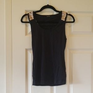 Cotton tank top with sequined shoulders Lightly used Copper sequins