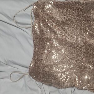 gold sequined top with straps and open back with a lower zipper. great for New Years Eve!