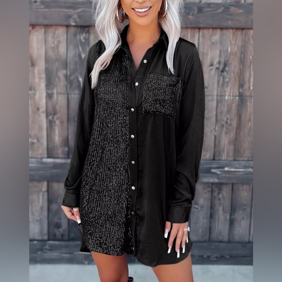 Sequins Black Button Down Dress