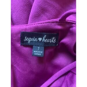 Sequins Hearts Womens/Teen fuchsia Asymmetrical dress Bust pads and Pleated Sz 7