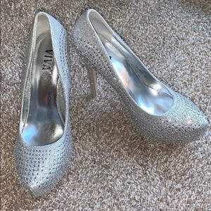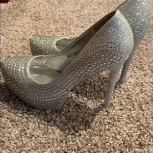 Round Toe Diamond High Heels All Over Sequins Heel approx 5” New