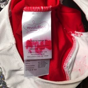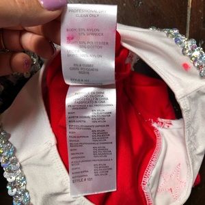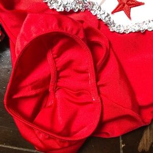 Used & ready for a new little girl to enjoy. We wore it with a skirt as an outfit. So cute! Small spot on the back and loose thread on the front, pictured. Still plenty of life to continue enjoying it. So cute for state fair or parade or could be for a football game or something like drill team 🤩 Red & White with silver sequins 😊 k1