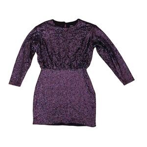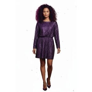 Sequins Strong Shoulder Mini Dress M Purple Holiday Party New Year Sparkle Shiny