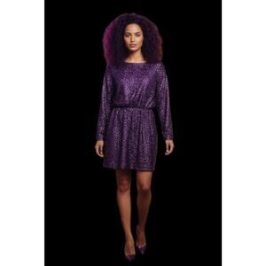 Sequins Strong Shoulder Mini Dress M Purple Holiday Event Party New Year Sparkle Shiny