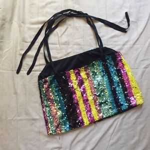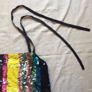 Super fun sequins top. Fit small/x small, square neck and back, satin lined Never worn, unknown brand