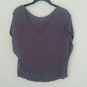 Shirt sleave shirt with sequin on the front and a plain purple back