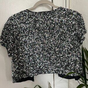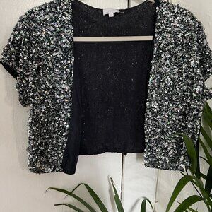 sequins cropped jacket - short sleeve - almost sheer dark navy-blue lining