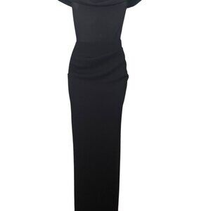 New with tags Ser.O.Ya Isabel Gown in size Large. This elegant black evening dress features an off-the-shoulder neckline and a floor-length silhouette with a sleek, form-fitting cut. A sheer mesh waist panel adds a modern edge to this classic silhouette. Crafted for formal occasions, galas, and upscale events, this dress is both timeless and striking.