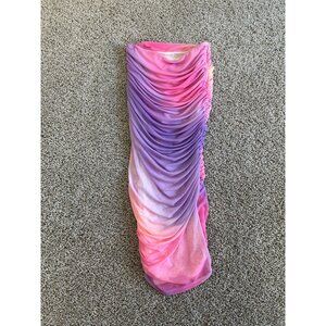 Ser.O.Ya XS Ruched Mesh Midi Skirt Pink & Purple Gradient Stretchy Fabric