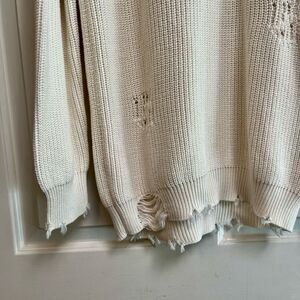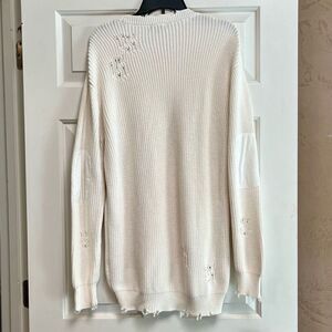 Ser.O.Ya Cream Devin Oversized Distressed Sweater Front Pocket Small