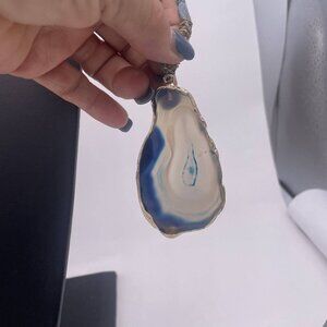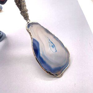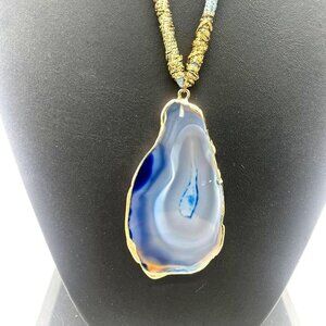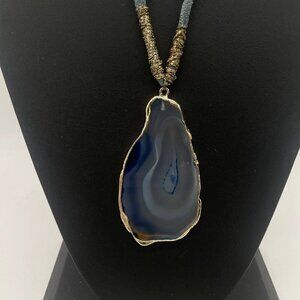 Sera Fina Suede Teardrop Gemstone Pendant Necklace Gray and Gold Tone 27 Inches