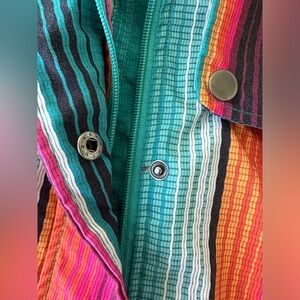 Vibrant western Crazy Train jacket, light weight, zips easily, pen mark or something similar pictured next to one button, other than that - in great condition