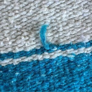 Good preowned condition with subtle sigs of use. There are a few visible yarn tie-offs, it has a few minor marks on it and the ends are fraying/un-weaving a bit.