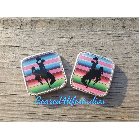 Serape print tack concho, bronc conch screwback concho, saddle conchos bridle