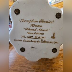 Introducing the Seraphim Angels Kristen "Blessed Advent" figurine, a beautiful addition to any collection. Crafted by Roman, Inc., this collectible features a stunning Guardian Angel subject from the Seraphim Classics collection. Perfect for lovers of decorative collectibles, this figurine is a must-have for those who appreciate fine craftsmanship and attention to detail. Ideal for display in your home or office, the Seraphim Angels Kristen "Blessed Advent" figurine is sure to inspire and delight. Limited numbered to 3000.