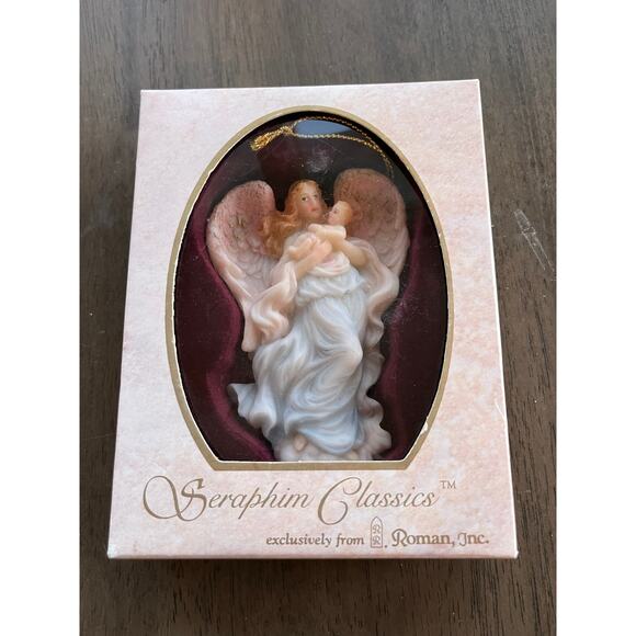 This exquisite Seraphim Classics by Roman, Inc. porcelain figurine is a delicate masterpiece in soft pastel hues. Its gentle colors and intricate details make it a charming addition to any collection or a thoughtful gift for special occasions like birthdays or anniversaries. Whether displayed on a mantel or nestled among your favorite keepsakes, this piece adds a touch of elegance to any setting. Pre-owned and lovingly cared for, it retains its original beauty and charm.