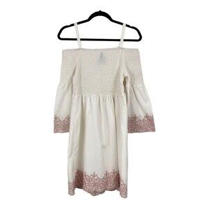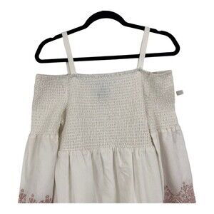 Seraphine 8 White Pink Embroidered Off the Shoulder Maternity Dress