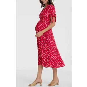Seraphine Floral Maternity Midi Wrap Bow Tie Sleeves Dress 4
